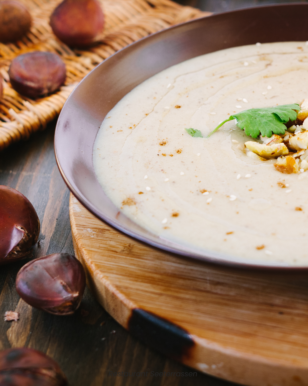 - Maronensuppe - samtig und aromatisch, verfeinert mit knusprigen Maronenstückchen, die eine winterliche Note setzen.