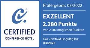 Ein zertifiziertes Konferenzhotel ist ein Synonym für Qualität, Professionalität und hervorragende Dienstleistungen. Diese Zertifizierung garantiert, dass das Hotel strenge Standards in Bezug auf Tagungseinrichtungen, technische Ausstattung, Servicequalität und Nachhaltigkeit erfüllt. Als Certified Conference Hotel bieten wir unseren Gästen das höchste Maß an Komfort und Zuverlässigkeit für erfolgreiche Veranstaltungen.
