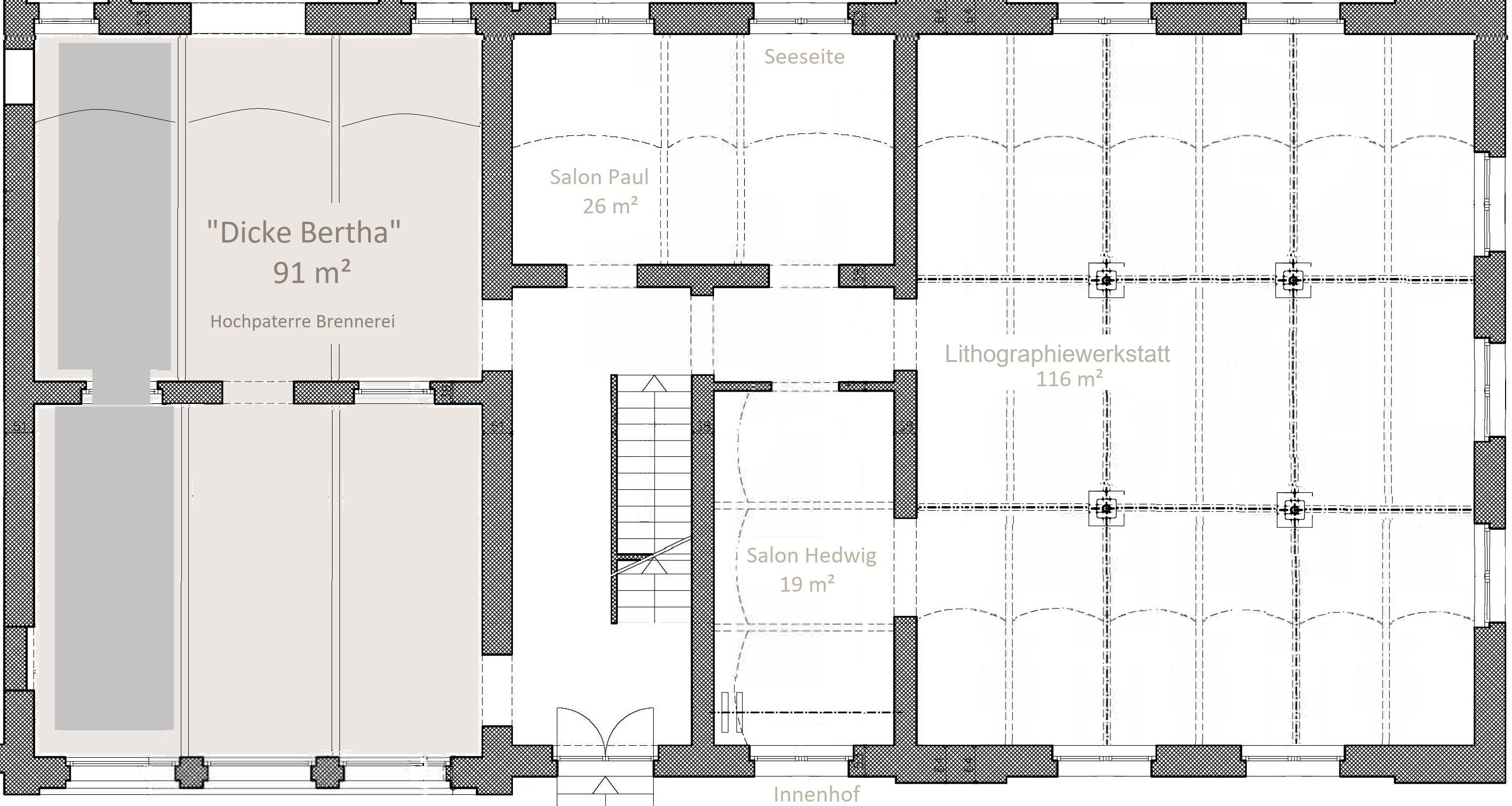 You can find the 'Dicke Bertha' in the Brennerei building.