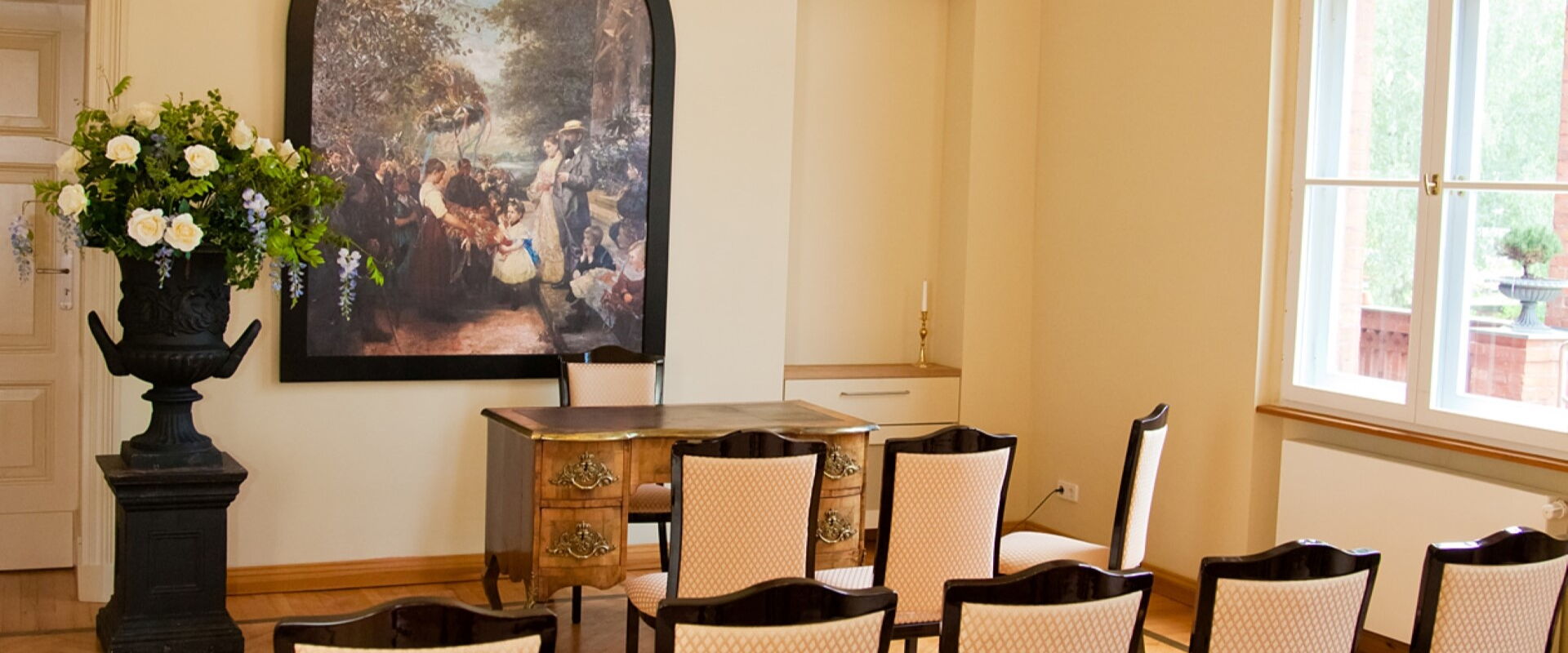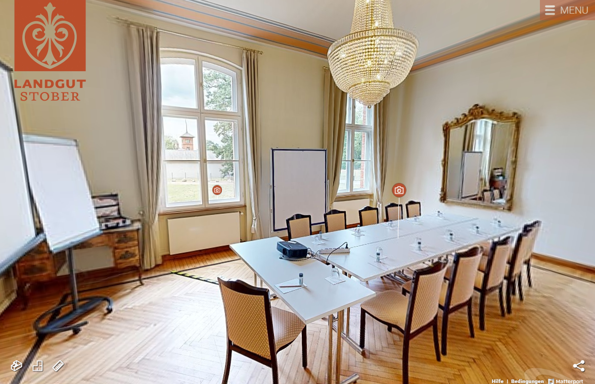 Im Salon der Entscheidung liegt im denkmalgeschützten Gutsverwaltergebäude aus rotem Backstein. Der stilvolle Salon bietet Sitzplätze für 26 Gäste, davor die separaten Warteräume für Braut und Bräutigam. Direkt gegenüber auf einer kleinen Anhöhe, liegt die idyllische Kirche von Groß Behnitz aus dem 16. Jahrhundert. Das Landgut Stober bietet Räumlichkeiten für Hochzeitsfeiern unterschiedlichster Art und Größe, von kleinen Familienfeiern ab 20 Gästen bis hin zu Events mit bis zu 4000 Personen.